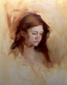 Alyssa’s Moment III, Oil on paper, 12″ x 16″
