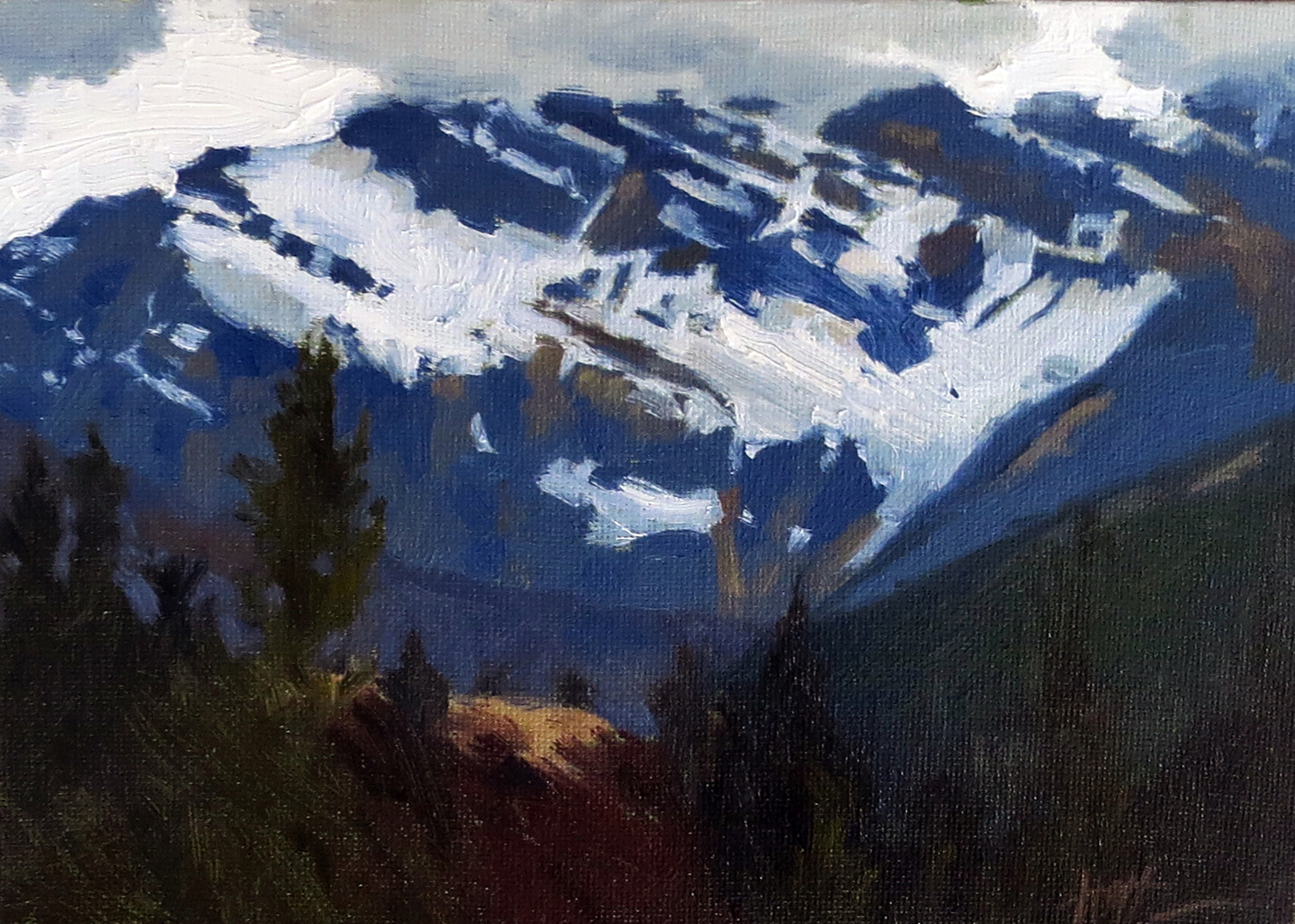Mt. Edith Cavell, oil on panel, 5″ x 7″