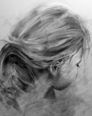 Pretty Girl, charcoal on paper, 12″ x 12″